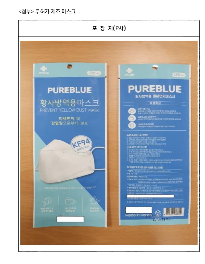 무허가 불법공장에서 만든 마스크에 정품 포장지를 입혀 kf94보건용 마스크로 판매했다고 합니다.